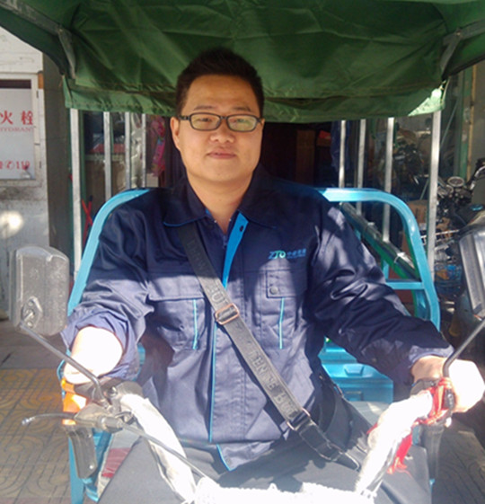 在操作場(chǎng)地打包區(qū)域,黃月斌僅用3分鐘將40-50個(gè)大小不一的快件整齊地放在袋子里。而快件全套操作流程,黃月斌只用了1個(gè)月就全部掌握。由于他積極上進(jìn),還考取了快遞員技能資格證書(shū)。然而有誰(shuí)知道,分揀、建包、派件等這些工作,普通人或許可以信手拈來(lái),但是黃月斌卻不行。4歲時(shí)因貪玩右臂被鞭炮炸傷截肢,只能靠左手勞作生活的黃月斌需要付出比健全人更多的努力。就拿建包來(lái)說(shuō),快件必須要整齊碼放在建包袋里,黃月斌單手裝件,必要時(shí)他就手腳并用,再不濟(jì)就用嘴咬住袋口。另外黃月斌送件的三輪車也是經(jīng)過(guò)他自己改裝,加油門(mén)的拉桿被他套上了一截水管,使他右臂截肢以上的部位可以套到水管中,從而完成加油門(mén)的動(dòng)作?!半m然失去了一直手臂,但是我還是對(duì)生活充滿信心?!?/span>